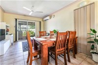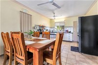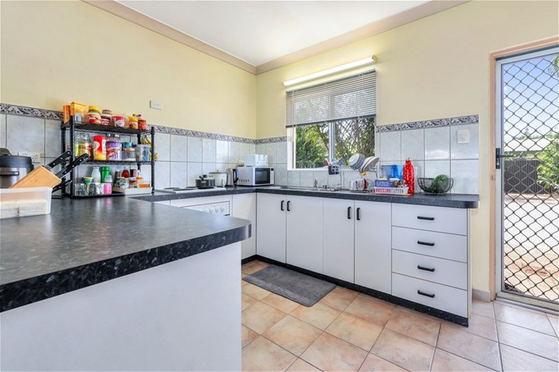 The kitchen adjoins the dining area and offers room to move as well as good bench and cupboard space.