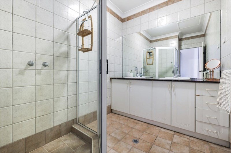 Your main bathroom is also well presented and offers stone bench tops and double wash basins. The WC is separate again.