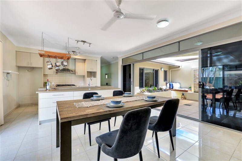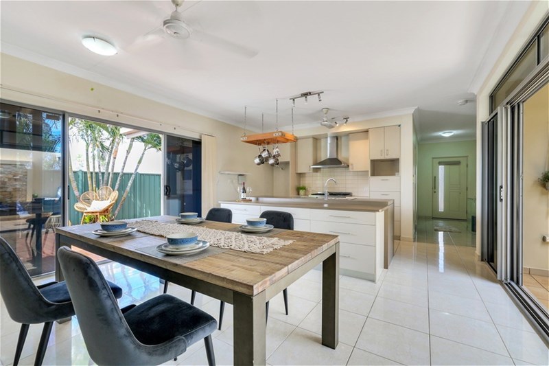Style and space is continued throughout the living and dining areas which are flanked by the yard to one side, which offers a paved and lawn area for the kids to play as well as a timber deck to entertain by the glistening cool of the salt water pool.