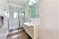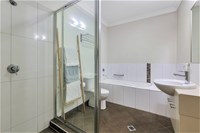 Your main bathroom is cleverly designed to cater for the families with toddlers and visiting in-laws.. The shower and bathroom are separated, whilst the theme of space is continued.