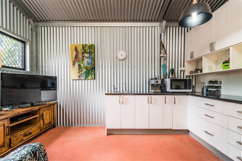 - 10m x 4m shed or suite with lights, air-con, shower, toilet and kitchenette