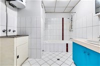 The bathroom is equipped with a combined bath tub and shower as well as incorporating the internal laundry, whilst the toilet is separate.